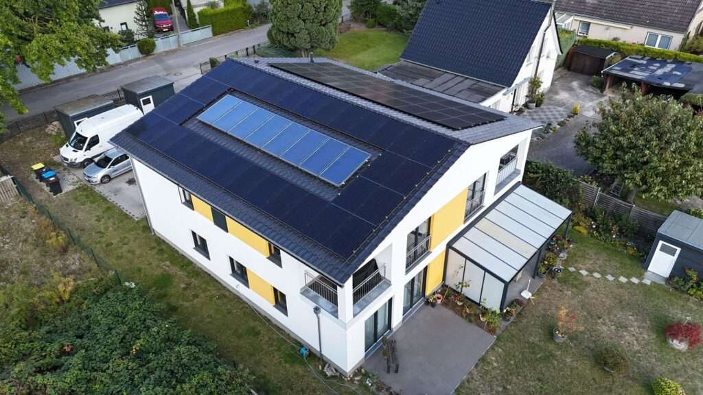 In dieser Woche haben wir ein ganz besonderes Projekt abgeschlossen: Eine Mieterstromanlage auf einem Mehrfamilienhaus in Schwerin. Auf dem Dach wurden 67 Module der Serie SOLARFABRIK S4 445 Trend mit einer Gesamtleistung von 29,82 kWp installiert – verteilt auf ein großzügiges Ost-West-Dach.